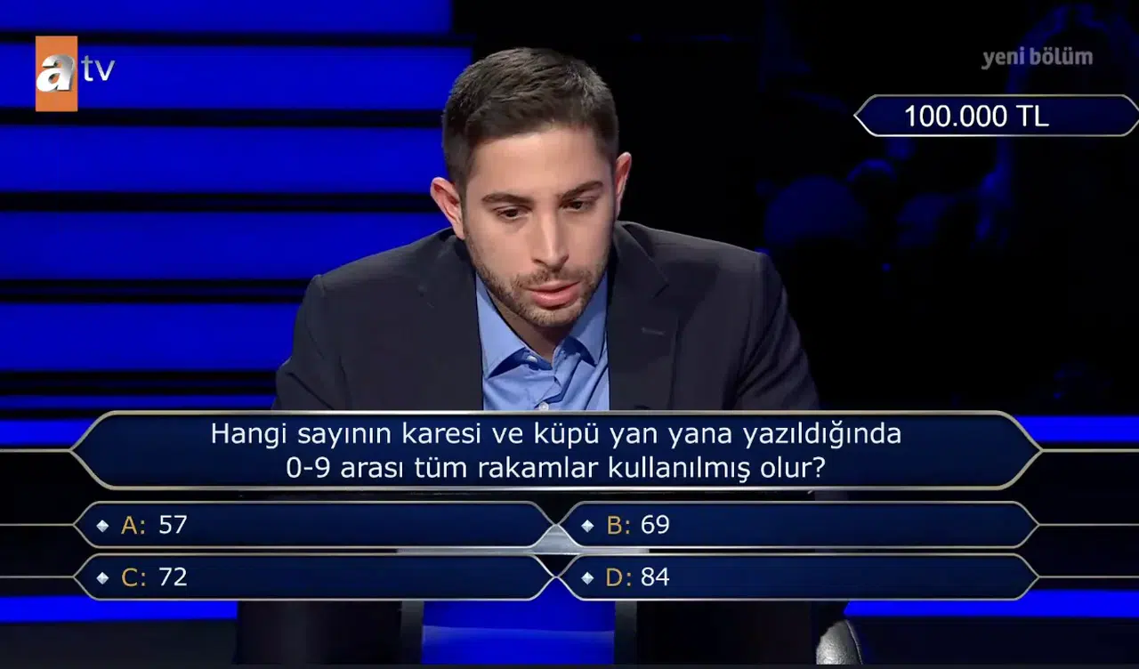 ATV ekranlarının en çok izlenen bilgi yarışmalarından Kim Milyoner Olmak İster, zaman zaman izleyicileri ekran başında düşündüren matematik sorularıyla da gündem oluyor. Yarışmanın son bölümlerinden birinde sorulan “hangi sayının karesi ve küpü yan yana yazıldığında 0-9 arası tüm rakamlar kullanılmış olur” sorusu kısa sürede sosyal medyada ve arama motorlarında yoğun şekilde araştırılmaya başladı.