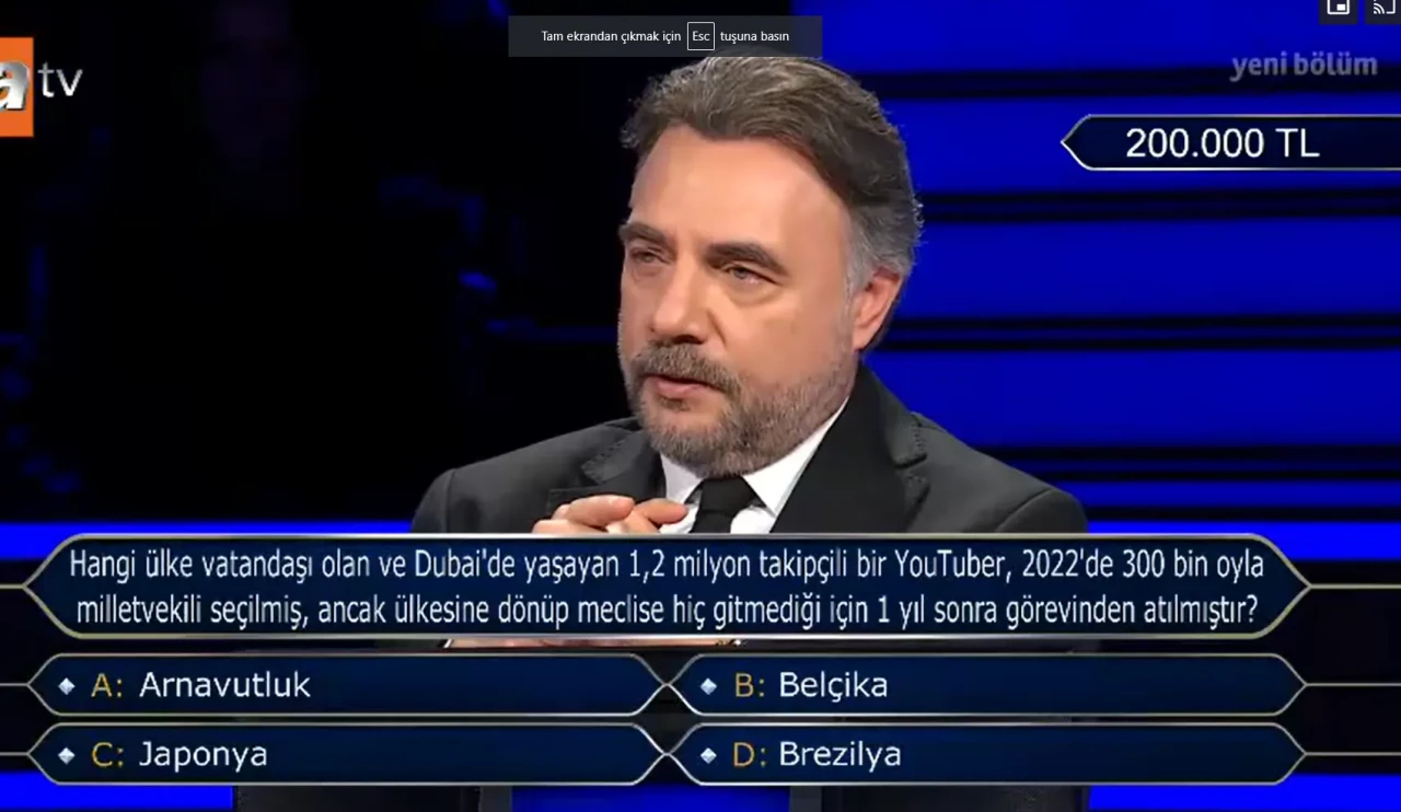 “Hangi ülke vatandaşı olan ve Dubai'de yaşayan 1,2 milyon takipçili bir YouTuber, 2022'de 300 bin oyla milletvekili seçilmiş, ancak ülkesine dönüp meclise hiç gitmediği için 1 yıl sonra görevinden atılmıştır?”