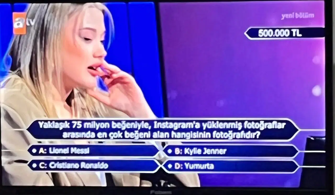 Instagram’da yaklaşık 75 milyon beğeni alan paylaşımla ilgili soru, dünya çapında tanınan isimlerin yer aldığı şıklarıyla yarışmacıyı zorladı. İzleyiciler arasında da büyük merak uyandıran soru, kısa sürede arama motorlarında öne çıktı.