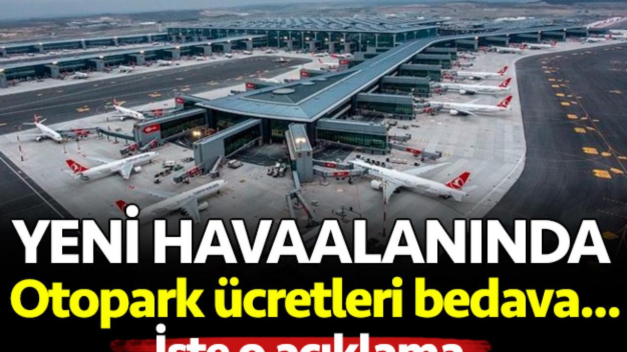 İstanbul Havalimanı'nın işletmecisi olan İGA'dan yapılan açıklamaya göre, havalimanının otoparkı 15 Nisan'a kadar ücretsiz olacak. İstanbul Havalimanı'nın yapımını ve 25 yıllığına işletmesini üstlenen İGA Havalimanı İşletmesi AŞ'den yapılan açıklamada, İstanbul Havalimanı otoparkının 15 Nisan'a kadar ücretsiz olarak kullanılabileceği belirtildi.