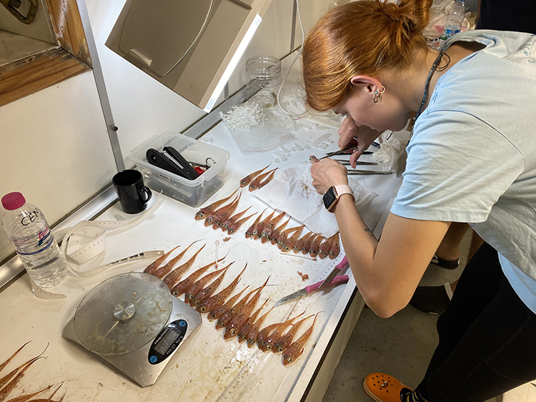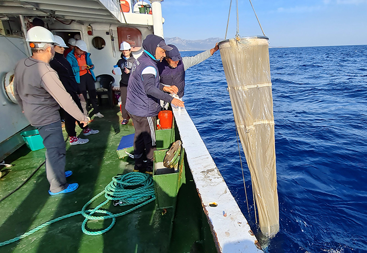 Arazi çalışmaları kapsamında "R/V Yunus-S" gemisiyle ÖÇKB alanında incelemelerde bulunduklarını anlatan Öztürk, "Çalışma kapsamda belirlenen 7 istasyonda trol, 5 istasyonda ise algarna çekimleri yapıldı. Koruma altındaki türleri, özellikle kıkırdaklı balıkları (köpekbalıkları) güvertede sayıp tarttıktan sonra hemen denize bıraktık. Elde edilen tüm türler sayılıp tartılarak istasyon bazında biomas hesabı ve tür çeşitlilik indeksi hesaplandı. Ayrıca çıkan çöpler de sayılarak kategorilerine göre ayrılıp not edildi." diye konuştu.