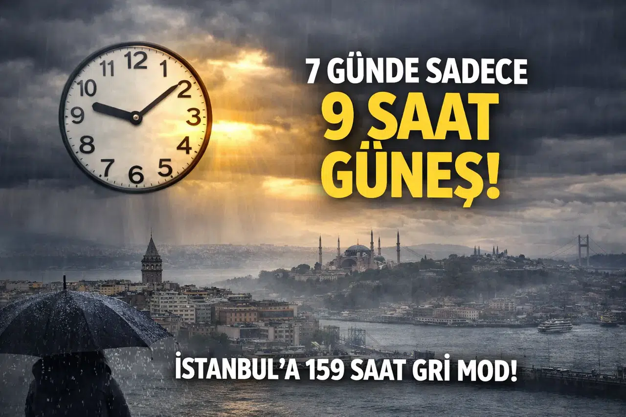 Hava Forum tarafından yapılan paylaşımda dikkat çeken veriler yer aldı. Açıklamada, İstanbul’da önümüzdeki 7 gün (168 saat) boyunca yalnızca 9 saat güneş görüleceği belirtildi.