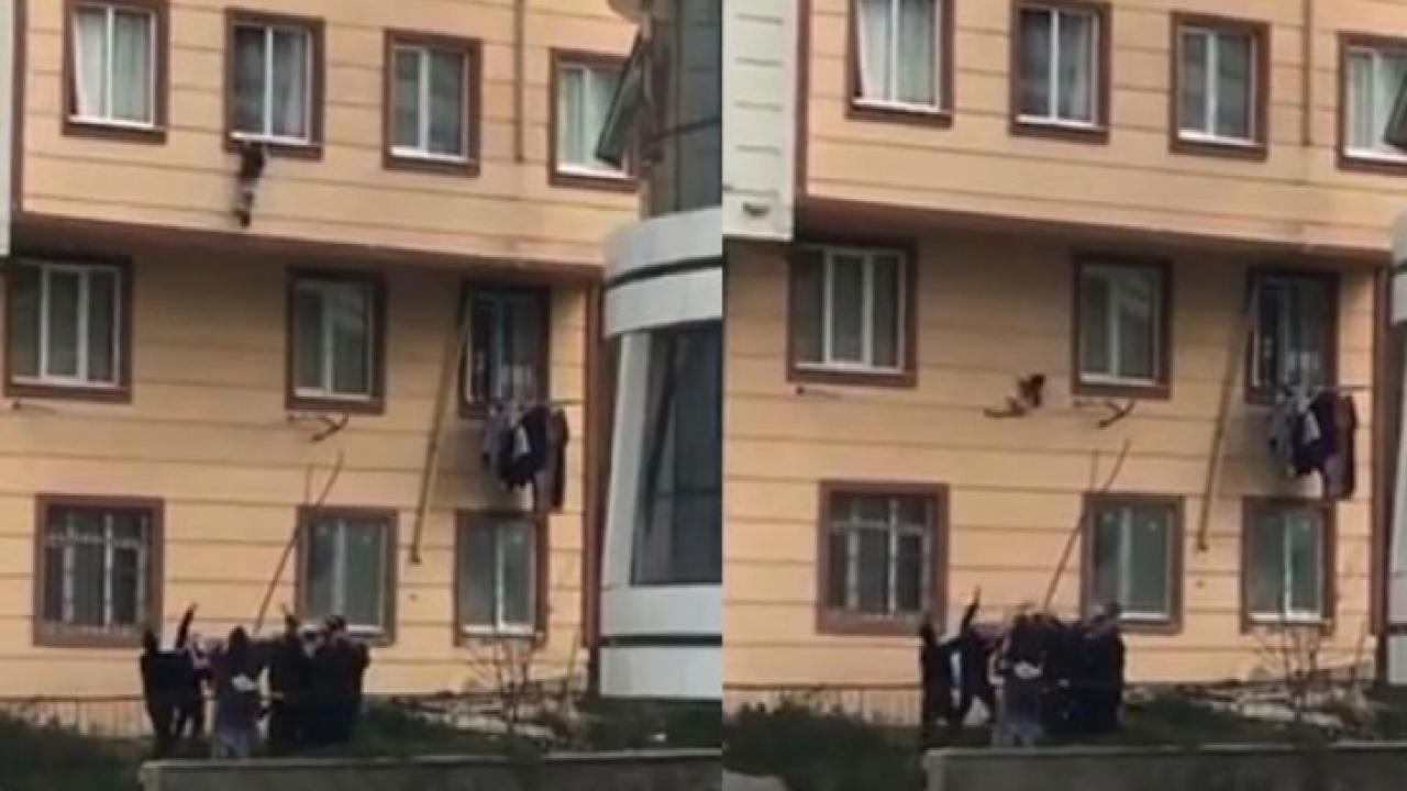 Kağıthane'de 5 katlı binanın ikinci katında inanılmaz görüntüler meydana geldi. Pencereye çıkan küçük çocuk aşağıya sarktı. Çevredekiler bir yandan olaydan haberi olmayan aileye ulaşmaya çalışırken diğer yandan da küçük çocuğu yakalamak için battaniye açtı. Elleri kayınca düşmeye başlayan küçük çocuğu bina önünde bekleyenler havada yakaladı. O anlar kameraya da yansıdı.