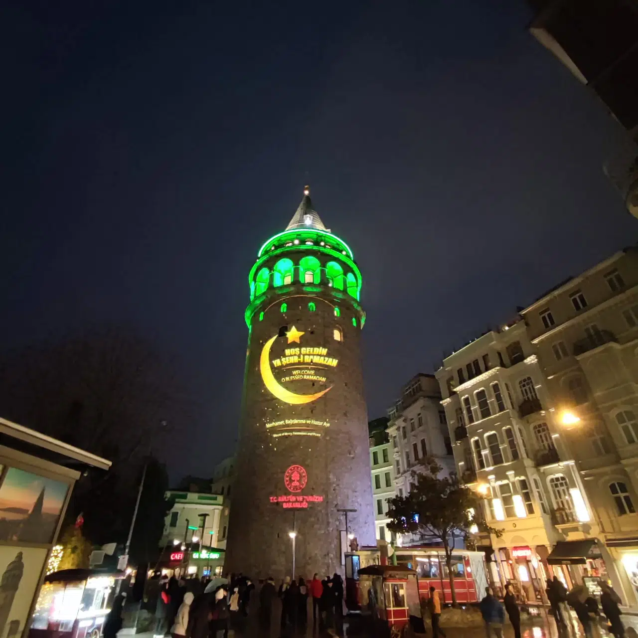 İstanbul’un simge yapılarından Galata Kulesi’nde Ramazan ayına özel uygulamalar hayata geçirildi. 18 Şubat akşamı itibarıyla başlayan düzenleme kapsamında kulenin dış cephesi iftar saatlerinde yeşil renkle aydınlatılıyor. Uygulama ile iftar vaktinin hem işitsel hem de görsel olarak şehir genelinde hissedilmesi amaçlanıyor.