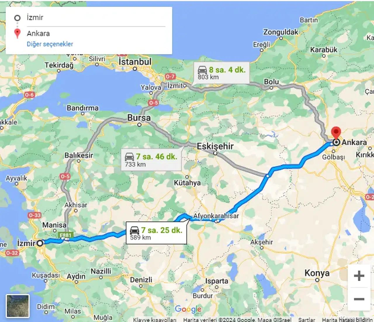 İzmir Ankara arası arabayla kaç saat sürüyor?