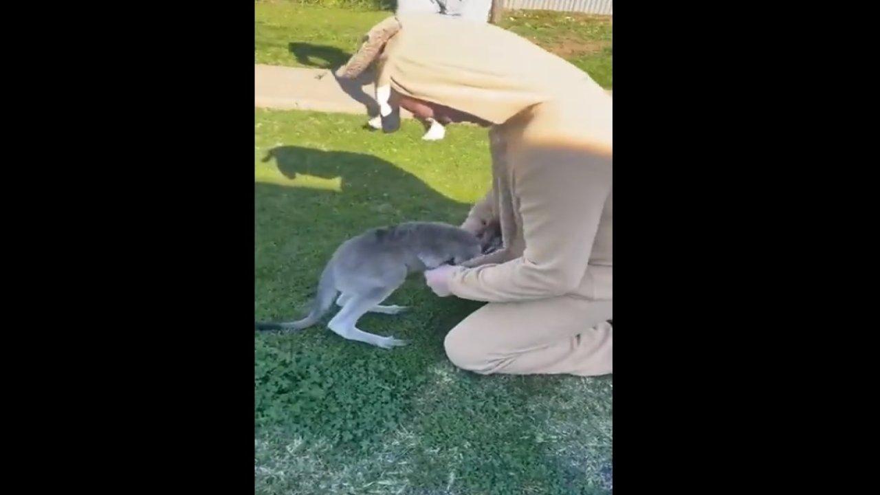 Yurtdışında çekilen bir videoda bahçeye giren ve oldukça korkan bir yavru kanguruyu doğaya geri götürmek isteyen ev halkı duruma ilginç bir fikir bularak hem de hayvanı korkutmadan bu işlemi gerçekleştirdi.