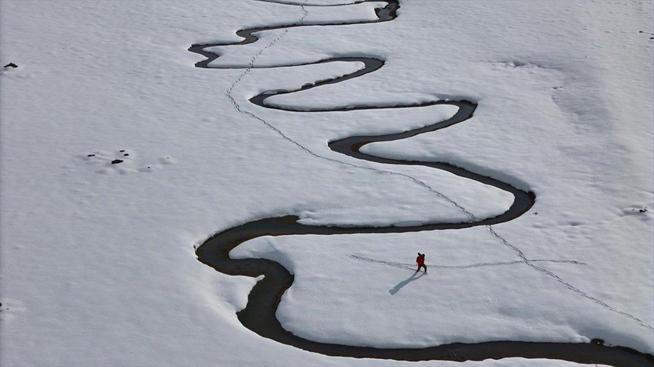 Yaz aylarında bölgedeki köylerin otlak ve su ihtiyacının da karşılandığı ova ile menderesler, kar yağışının ardından beyaz örtüyle kaplandı.