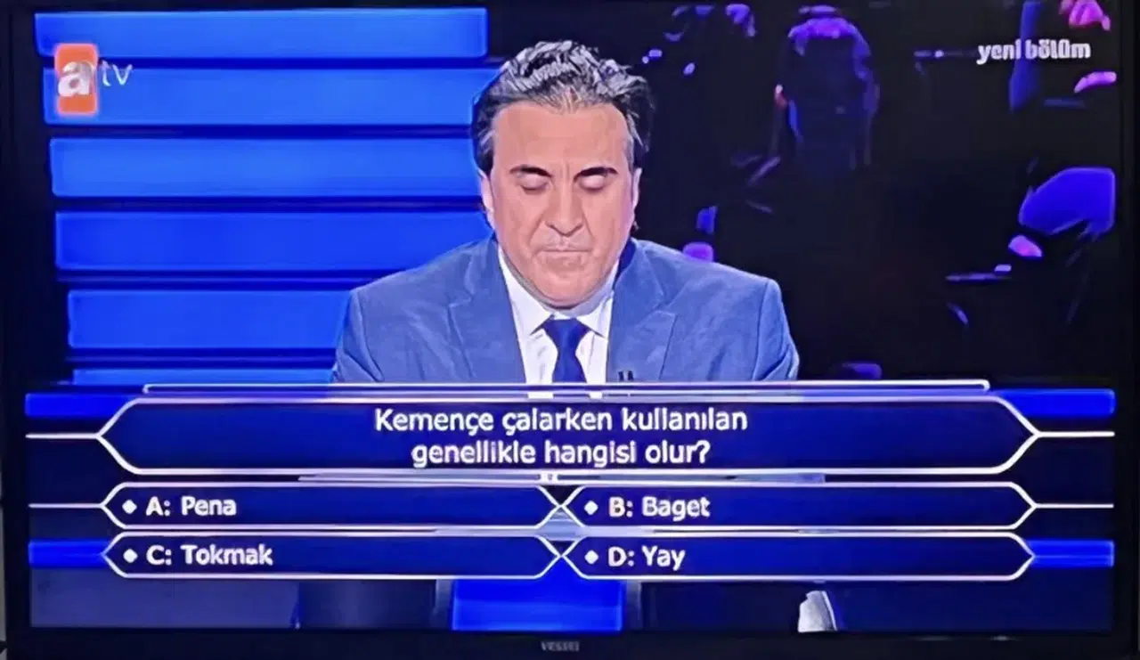ATV ekranlarında Oktay Kaynarca’nın sunumuyla yayınlanan Kim Milyoner Olmak İster’de dikkat çeken bir soru gündem oldu. Kemençe ile ilgili sorulan bu soru, yarışmayı izleyenleri ekrana kilitlerken sosyal medyada da geniş yankı uyandırdı. Müzik ve kültür bilgisini ölçen bu soru, izleyiciler tarafından sıkça araştırılmaya başlandı.