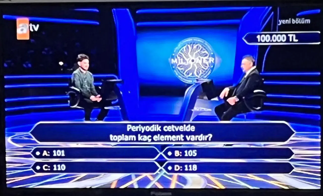 ATV ekranlarında Oktay Kaynarca’nın sunumuyla yayınlanan Kim Milyoner Olmak İster yarışmasında bu kez temel bilimlere dayalı dikkat çekici bir soru soruldu. Periyodik cetvel bilgisi gerektiren soru, sayılar arasındaki küçük farklar nedeniyle yarışmacıyı zorladı. İzleyiciler arasında da sıkça tartışılan soru, kısa sürede arama motorlarında öne çıkan başlıklar arasına girdi.