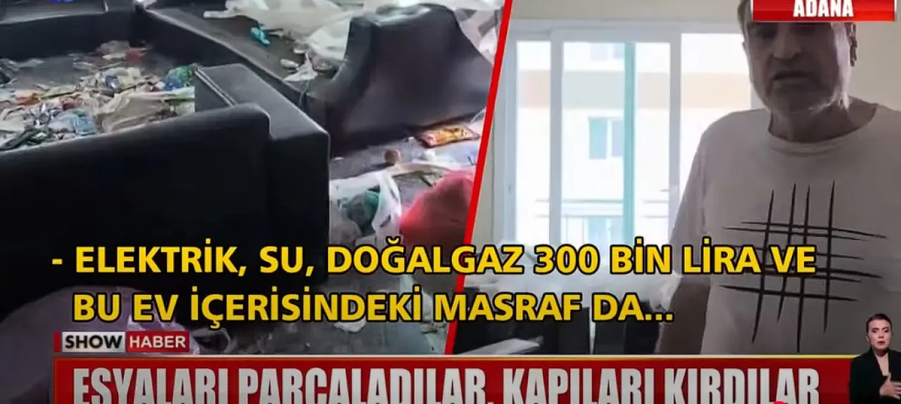 Adana'da yaşanan olayda bir ev sahibi, 3 aydır kira ödemeyen kiracısını büyük uğraşlar sonucunda tahliye ettirdi. Ancak tahliye sonrası eve giren ev sahibi, karşılaştığı manzara karşısında şok oldu. 120 metrekarelik dairenin içi çöp yığınına dönüşmüş, evdeki tüm eşyalar zarar görmüş ve duvarlar dahi parçalanmıştı.