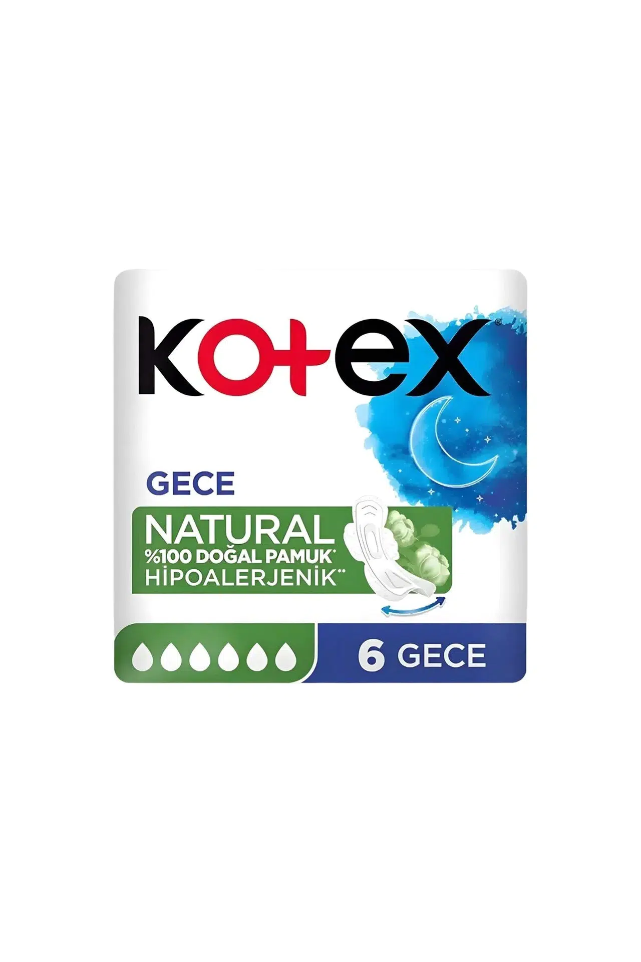Kotex markası farklı emicilik seviyelerine sahip günlük ve gece kullanımı için hijyenik ped çeşitleri üretmektedir.