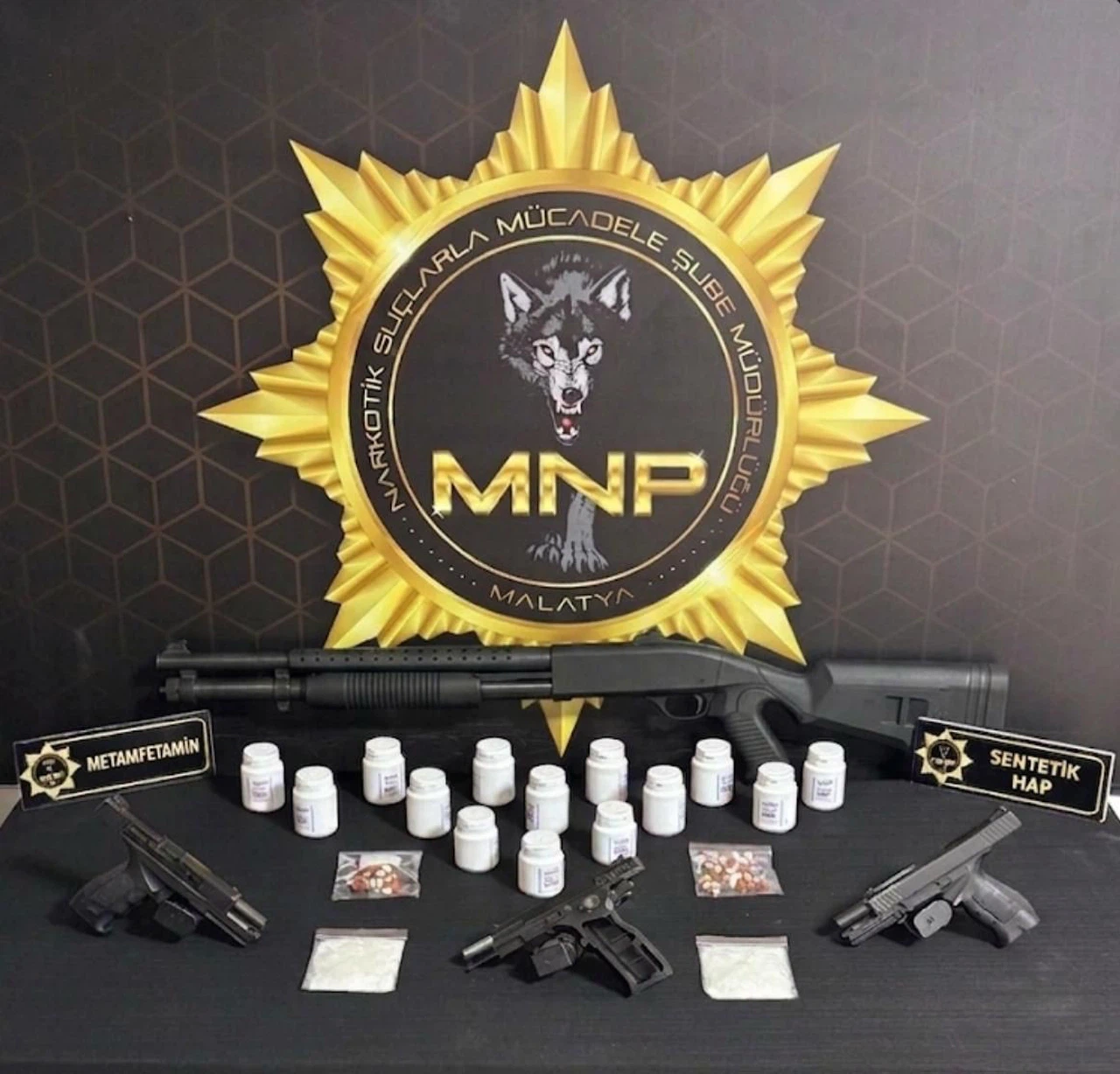 Belirlenen 3 adreste eş zamanlı yapılan aramalarda 812 adet sentetik ecza, 37 gram metamfetamin maddesi, 3 adet ruhsatsız tabanca, 1 adet ruhsatsız tüfek ele geçirilirken, 3 zanlı gözaltına alındı.