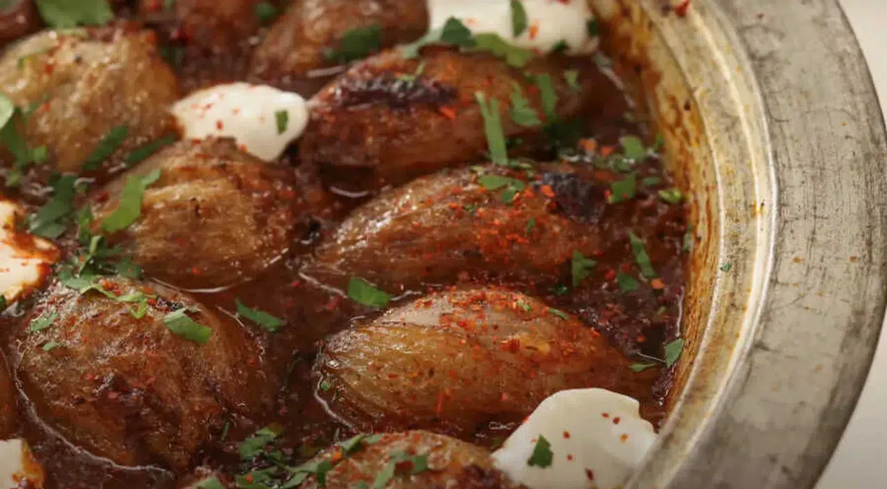 Bu yemeğin en belirgin özelliği, tat dengesidir. Soğanın doğal aroması, nar ekşisinin hafif keskinliği ve baharatların yoğun kokusu bir araya gelerek güçlü bir lezzet oluşturur.
