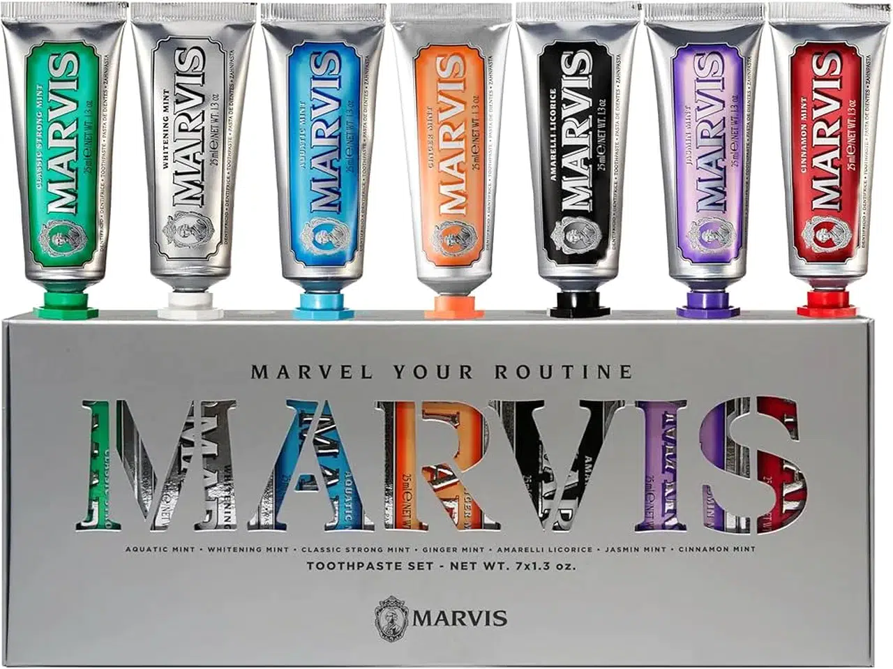 Markanın en popüler ürünleri arasında farklı aromalara sahip diş macunları bulunuyor. Marvis ürünleri genel olarak şu kategorilerde öne çıkıyor: