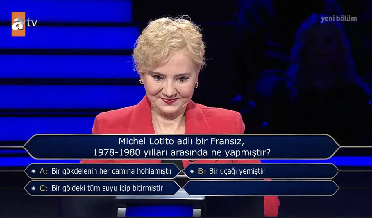 Televizyon ekranlarının en çok izlenen bilgi yarışmalarından Kim Milyoner Olmak İster, zaman zaman ilginç ve şaşırtıcı sorularıyla gündeme geliyor. Yarışmanın son bölümlerinden birinde sorulan Michel Lotito sorusu ise hem yarışmacıyı hem de izleyicileri şaşırttı.