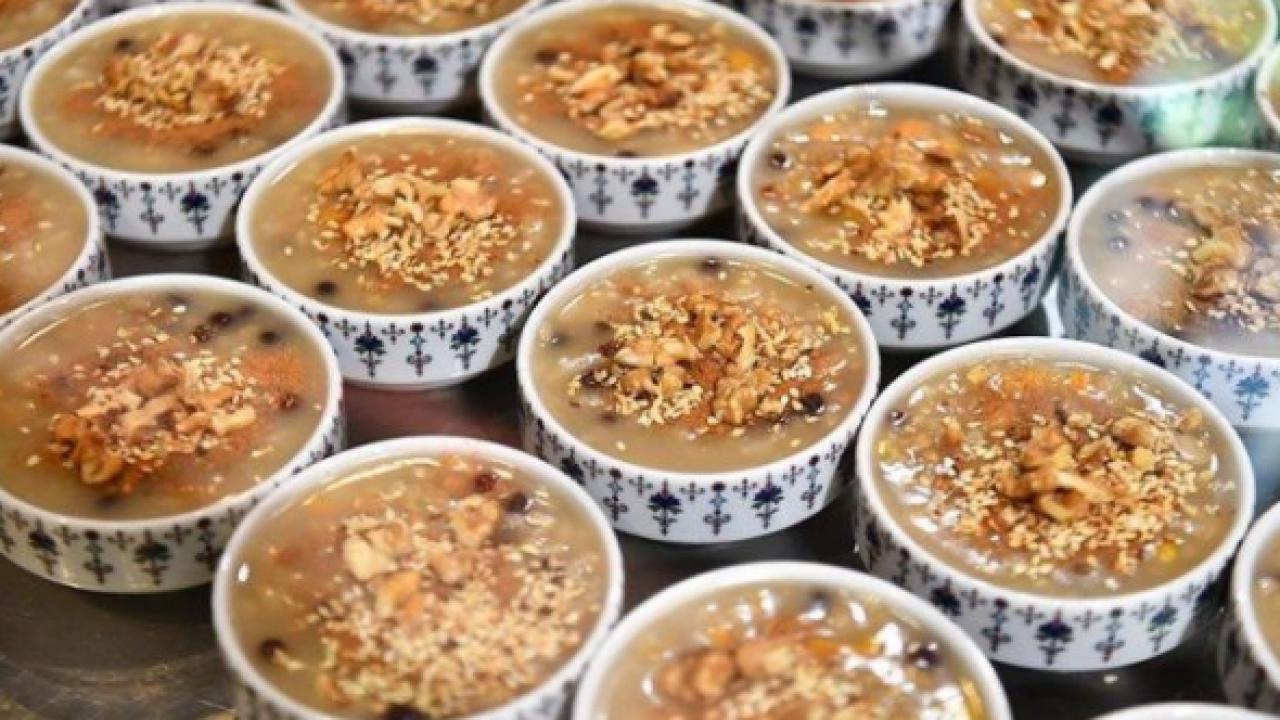 Aşure kaselerde soğumaya yüz tutunca, üzerini fındık, ceviz, fıstık, kuş üzümü, kuru üzüm ve nar taneleri ile süsleyebilirsiniz.