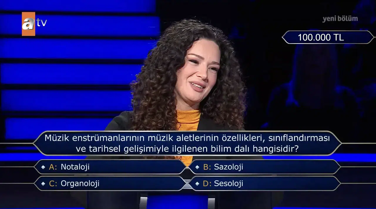 ATV ekranlarında Oktay Kaynarca’nın sunumuyla yayınlanan Kim Milyoner Olmak İster’de sorulan bu soru, müzik enstrümanlarının özellikleri ve tarihsel gelişimiyle ilgilenen bilim dalını sorguluyor. 100 bin TL barajında gelen soru, hem yarışmacıyı hem de izleyicileri düşündürdü. Şıklar arasındaki benzer kavramlar cevabı daha da zorlaştırdı.