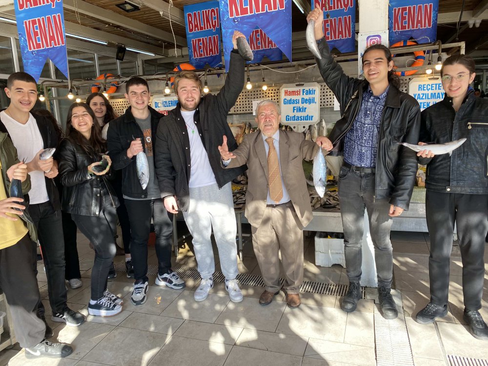 Öğrencilere deniz ve balık hakkında bilgi veren Türkiye Deniz Canlıları Müzesi kurucusu Kenan Balcı, “Gençlerimiz bizim geleceğimiz. Denizin ve balığın önemini anlattık. Denizler ekmeden biçtiğimiz tarlarımızdır. Denizleri evimiz gibi temiz tutmayınız. Bugün oltamızı atıyoruz çeşit çeşit farklı lezzetlerde balık yakalıyoruz. Bu bizim ve ülkemiz için bir nimet. Balığın ve denizin önemini bilmeliyiz” diye konuştu. Sezon açıldığından beri palamut akının devam ettiğini vurgulayan Kenan Balcı, “Balık anne sütünden sonra yıpranan dokuları onaran tek besin kaynağı. Besin değeri çok yüksek. Palamut mevsimindeyiz. Palamut irileşti yağlandı. Tam bir omega 3 deposu haline geldi. Öğrenci kardeşlerimize burada palamut şiş, palamut pirzola ve palamut köfte ikramında bulunduk. İlk kez bu çeşitleri tadan arkadaşlarımız vardı. Çok beğendiler. Kılçık derdi yok. Özellikle yaşlı ve çocuklarımız mutlaka haftada iki, üç gün balık yesinler” dedi.