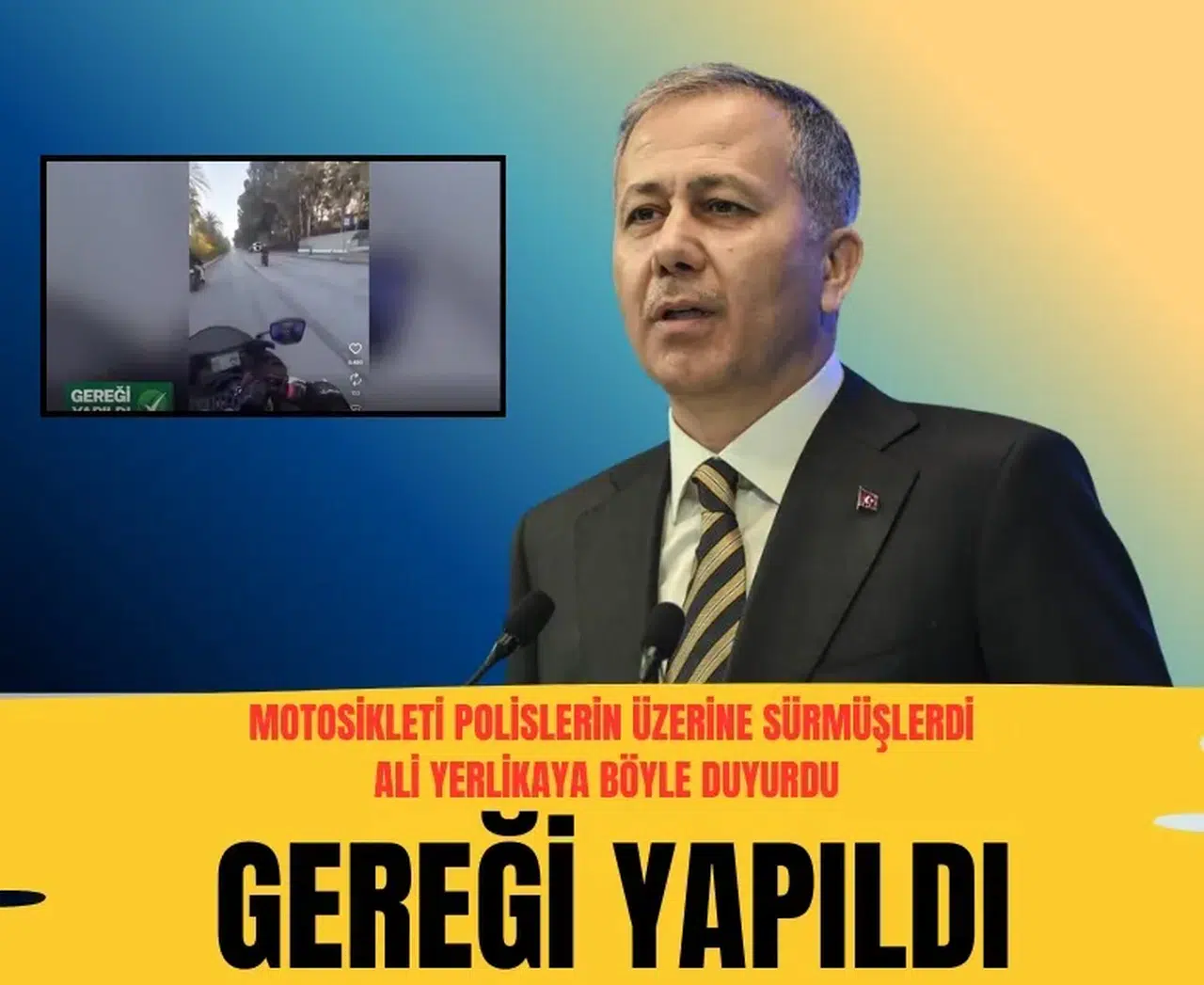 İçişleri Bakanı Ali Yerlikaya, Antalya’nın Alanya ilçesinde yol kontrolü sırasında polislerin üzerine motosiklet süren ve trafikte tehlike yaratan şahıslarla ilgili açıklama yaptı. Yerlikaya, yakalanan 4 kişiden 2’sinin tutuklandığını duyurdu.
