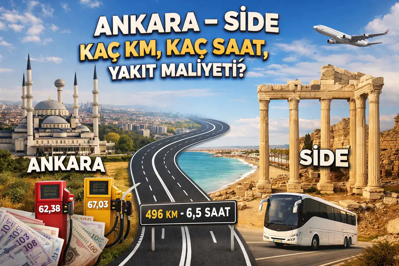 Başkent Ankara’dan Antalya’nın turistik noktalarından Side’ye seyahat planlayanların en çok merak ettiği konuların başında mesafe, yol süresi ve yakıt maliyeti geliyor. Özellikle 2026 yılı güncel akaryakıt fiyatlarıyla birlikte Ankara-Side arası kaç km, kaç saat sürer ve en ekonomik ulaşım hangisi soruları sıkça araştırılıyor. İç Anadolu’dan Akdeniz’e uzanan bu rota, hem manzarası hem de sürüş dinamikleriyle dikkat çekiyor. İşte Ankara ile Side arasındaki mesafe, süre ve maliyet detayları…