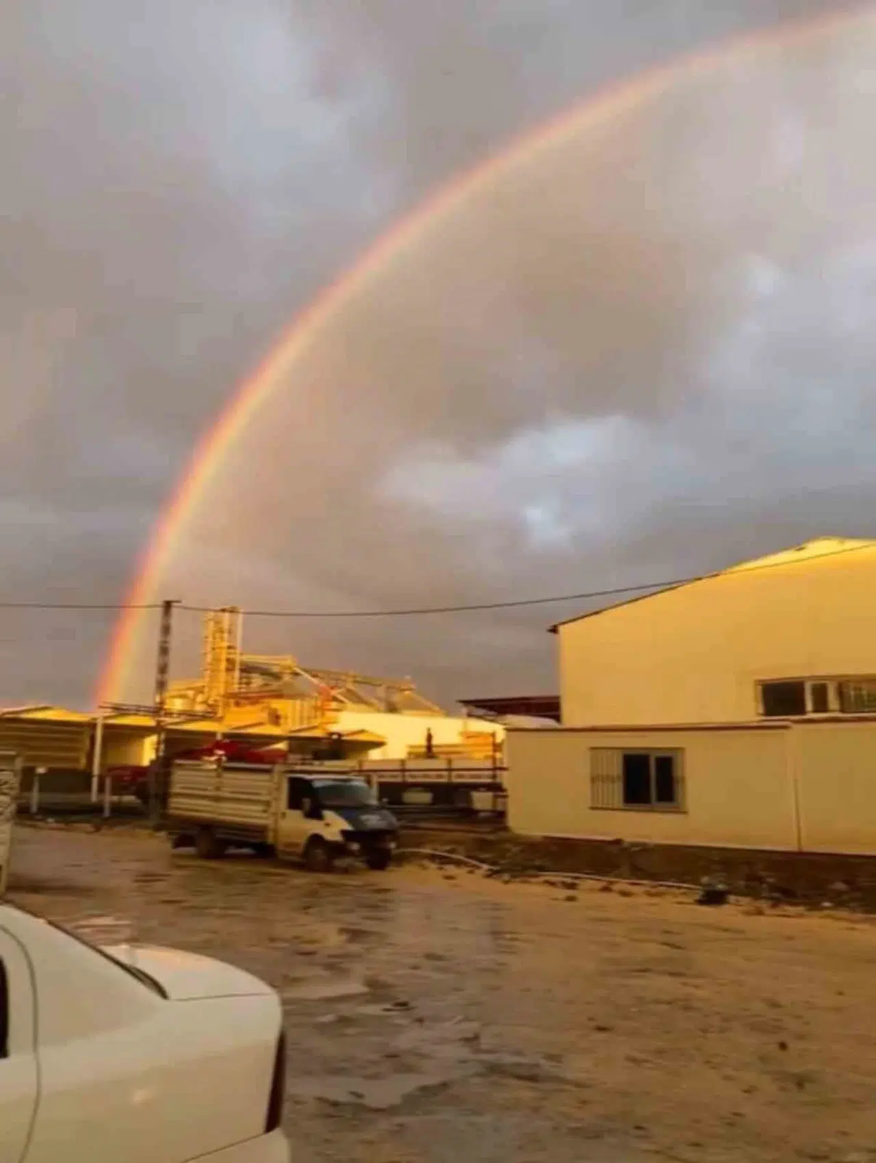 Siverek’te gün boyu aralıklarla devam eden yağışlı hava, yerini huzurlu bir atmosferle birlikte sürpriz bir doğa olayına bıraktı. Bulutların dağılmasıyla birlikte ufuk çizgisinde beliren devasa gökkuşağı, ilçenin üzerinde adeta görsel bir şölen yarattı.