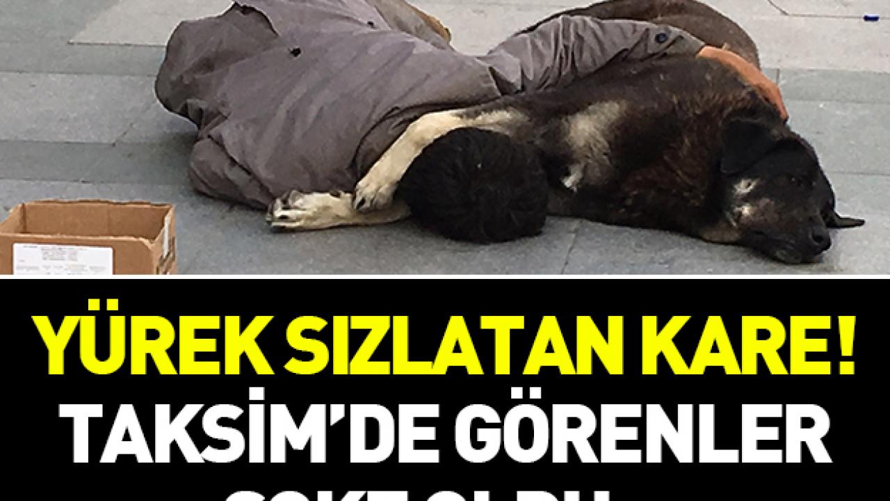 Taksim'de yıkımı süren Atatürk Kültürü Merkezi (AKM) önündeki kaldırımda sabah saatlerinde köpeğine sarılarak uyuyan bir çocuğun görüntüsü yürekleri sızlattı.