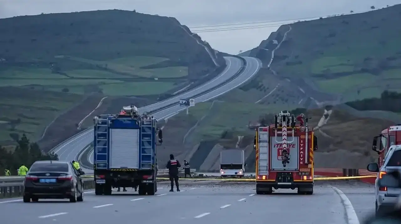 F-16’nın düştüğü Naipli mevkisinde İzmir-İstanbul Otoyolu güvenlik gerekçesiyle trafiğe kapatıldı. Sabahın ilk ışıklarıyla birlikte bölgede çalışmalar sürerken, uçağın düştüğü noktada otoyolda çukur oluştuğu görüntülendi.
