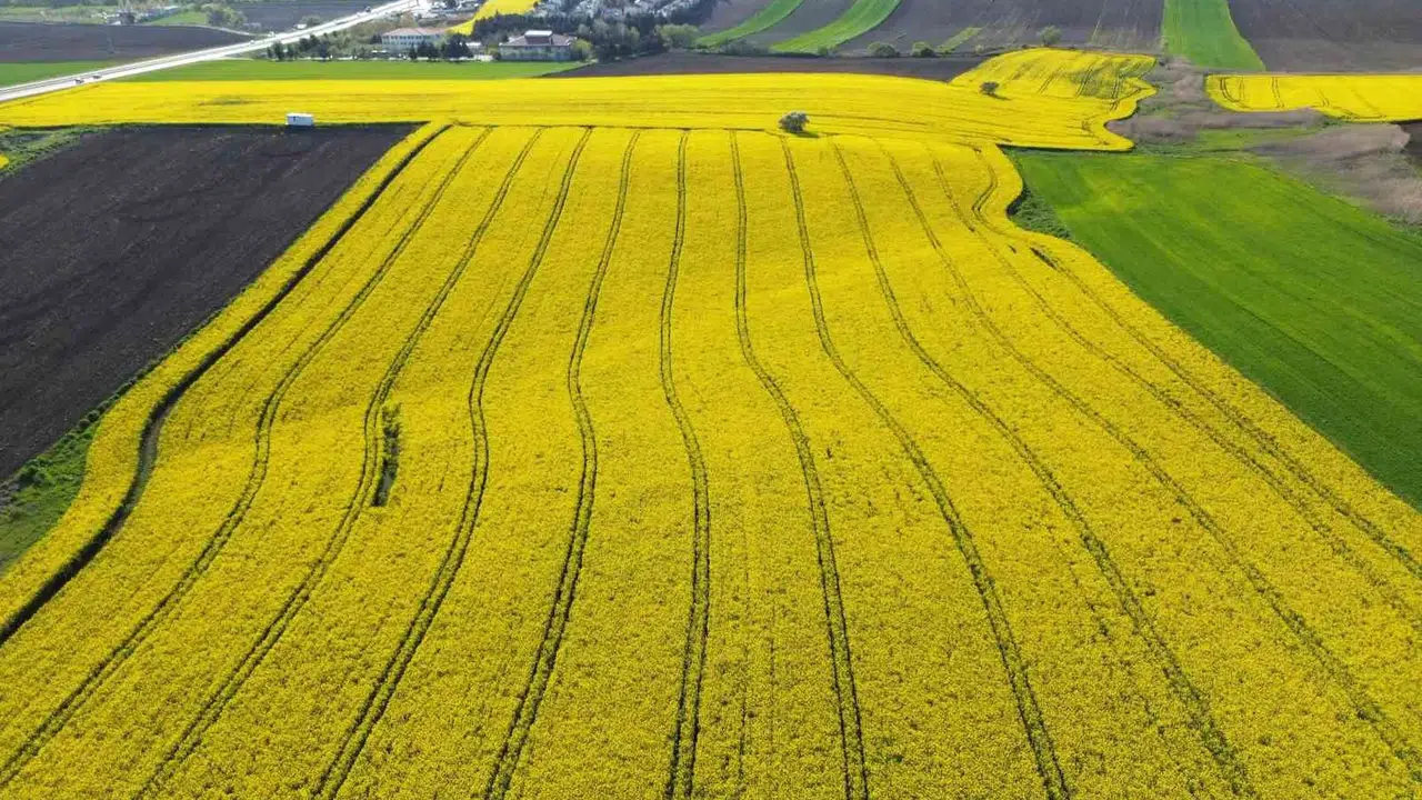 Son dönemde bölge tarımında stratejik bir öneme sahip olan kanola, yüksek ekonomik getirisiyle üreticilerin ilk tercihleri arasına girdi. Buğdayın en güçlü alternatifi olarak görülen ve ayçiçeği ile pazar payını paylaşan kanola, verimliliğiyle de dikkat çekiyor. Sonbaharda toprakla buluşan tohumlar, kışın zorlu şartlarını atlatıp baharla birlikte toprağı adeta bir tabloya dönüştürdü.