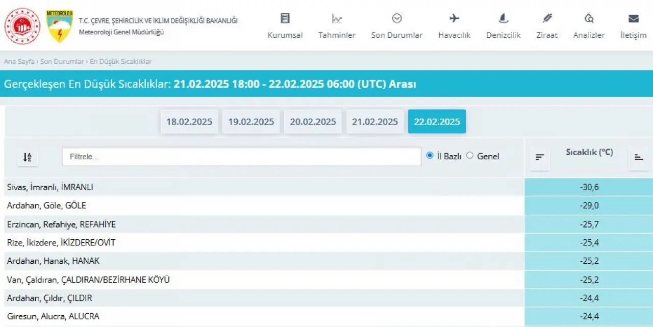 Sivas'ın İmranlı ilçesinde yaşanan şiddetli kar yağışı ve Sibirya soğukları Türkiye'de rekor düşük sıcaklıklara sebep oldu. İmranlı'da termometreler -30,6 dereceye kadar düşerken, hayatı olumsuz etkiledi.