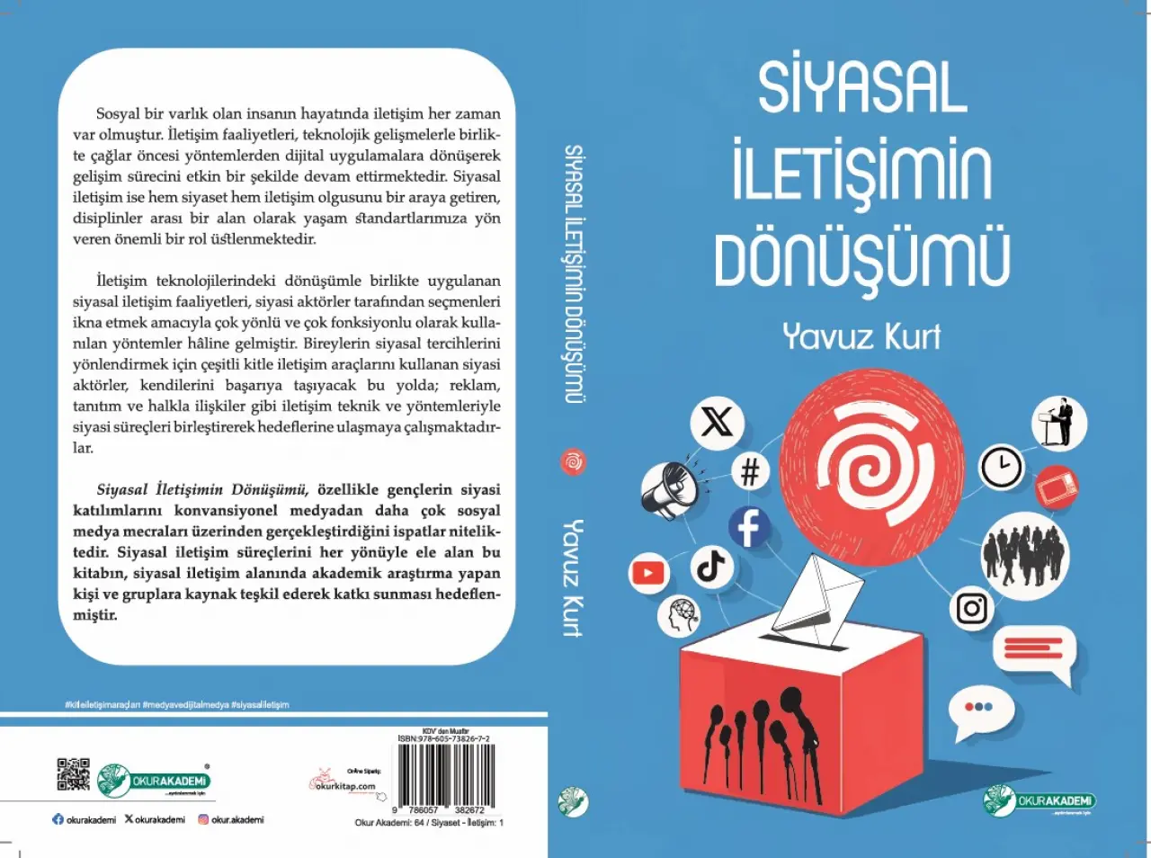 Yavuz Kurt’un kaleme aldığı “Siyasal İletişimin Dönüşümü”, geleneksel siyasal iletişim modellerinden dijital çağın yeni paradigmalarına uzanan kapsamlı bir perspektif sunuyor. Kitap; iletişim fakülteleri öğrencileri, akademisyenler ve siyasal stratejiyle ilgilenen profesyoneller için kaynak eser niteliği taşıyor.