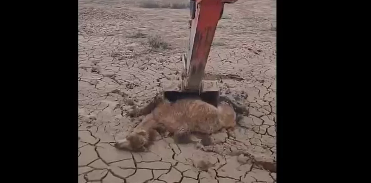 Çölün ortasında kuma saplanan deveyi gören bir kepçe operatörü hayvanı bulunduğu yerden kurtararak yaşama dönmesini sağladı.