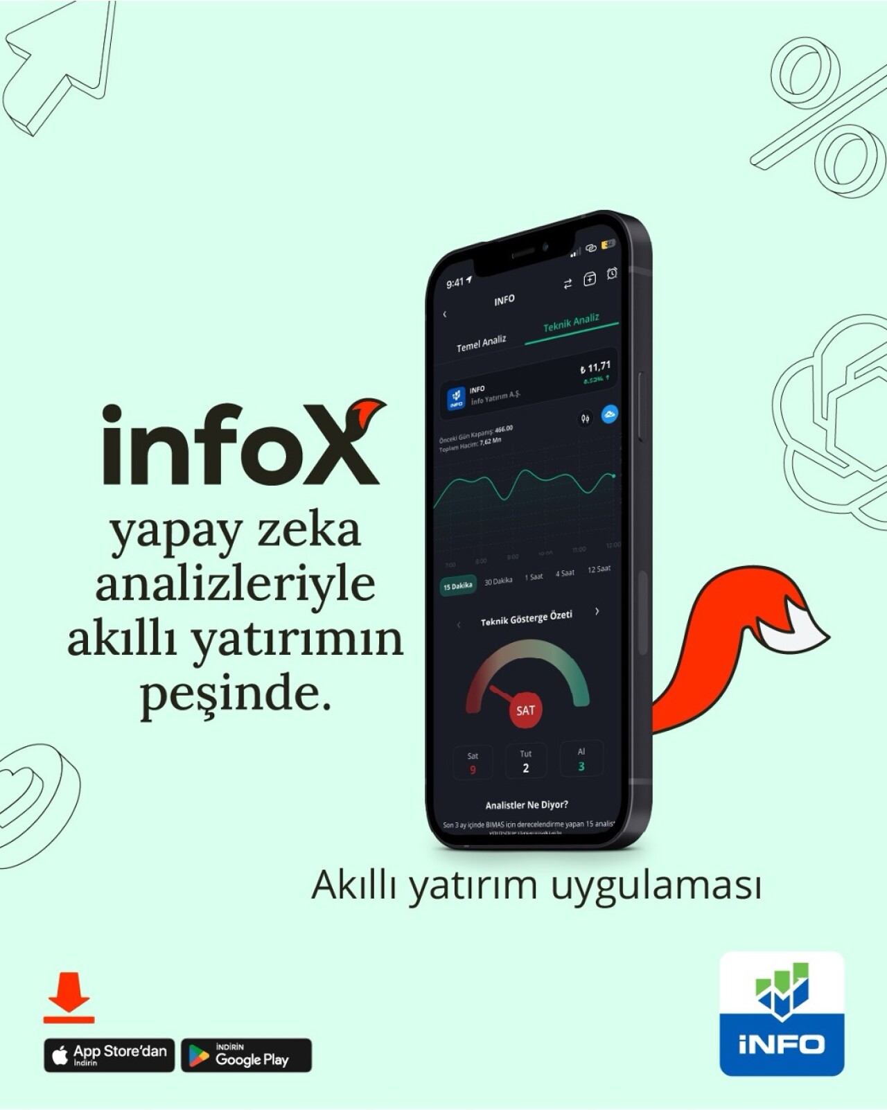 Haziran ayında kullanıcılarla buluşan ve büyük bir ilgiyle karşılanan yatırım uygulaması infox ile piyasadaki tüm yatırım ürünleri, karşılaştırmalı veriler, piyasadan anlık haberler, yapay zekâ destekli çözümler, robotik işlem imkânları ile tek bir platformda yatırımcıların önüne geliyor ve başka uygulamalara ihtiyaç bırakmıyor. Gelişmiş temel ve teknik analiz özellikleri, detaylı grafikler ve verilerle bilgiyi güce dönüştüren infox en gelişmiş araçları sunmakla kalmıyor, aynı zamanda bu araçların nasıl kullanılacağını öğretiyor, yatırımcıyı güncel gelişmeler, uzman yorumları ve analizlerle destekliyor. Yatırımcılar infox ile algoritmik işlemleri yapmaya ve arbitraj fırsatlarını robotik yöntemlerle yakalamaya imkân verirken, bunların tek bir dokunuşla kolayca yapılabilmesini sağlıyor. Yatırımcılar, akıllı yatırım uygulaması infox’u Play Store veya App Store’den indirerek görüntülü görüşme ile kolayca hesap açarak yatırımlarını yapabiliyor.