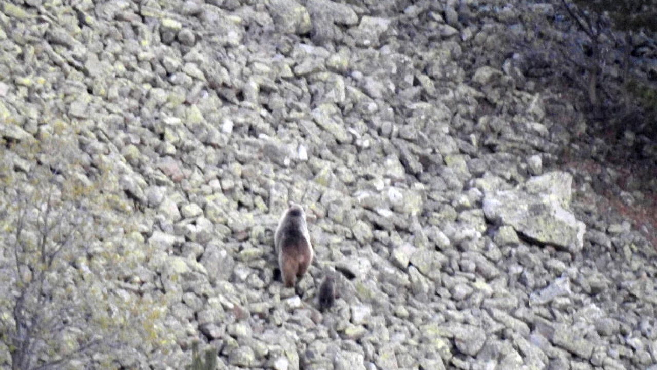 Yavrusuyla birlikte gündüz vakti yiyecek aramaya çıkan dişi ayı, Gümüşhane Doğa Koruma ve Milli Parklar (DKMP) Şube Müdürlüğü kameralarına yakalandı.