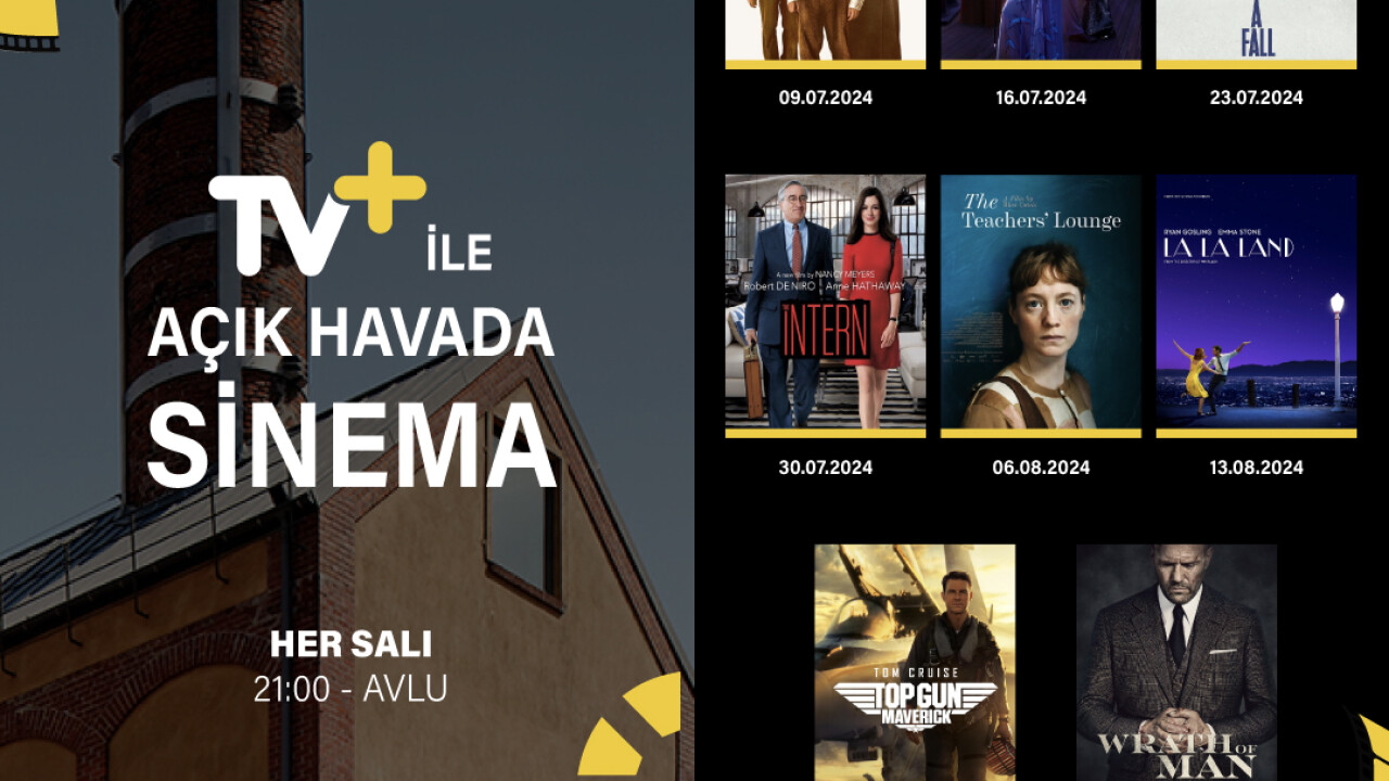 Yazın coşkusu ve sinema keyfi, Türkiye’nin süper içerik platformu TV+ ile açık hava sinema şöleninde yaşanacak. TV+ ana sponsorluğunda, Yapı Kredi bomontiada’da yaz sezonu boyunca her salı akşamı birbirinden özel yapımlar sinema severlerle buluşacak.