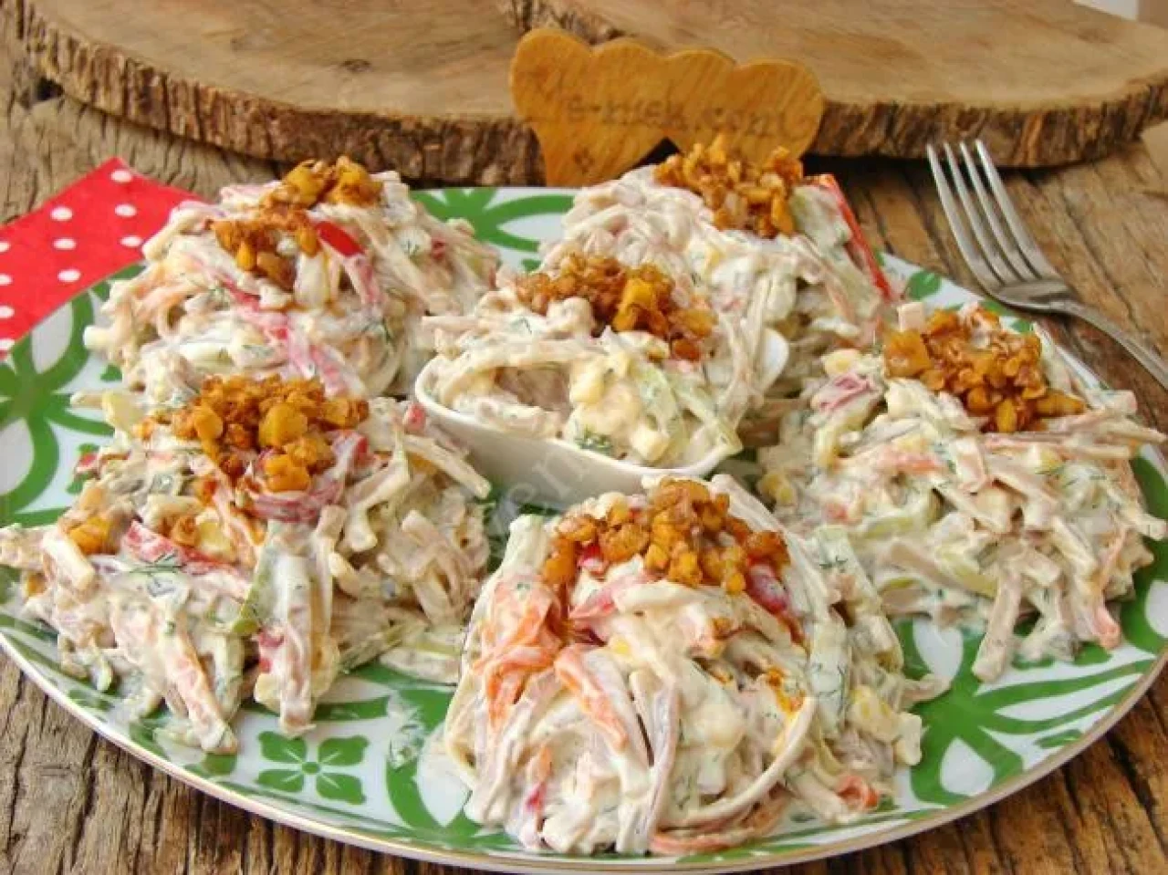 Servis tabağına aldığınız salatanın üzerine tereyağlı sosu dökün, ince doğranmış taze soğanla süsleyip servis edin.