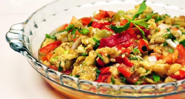 - Patlıcanlı salatanın üzerine tuz ve zeytinyağını ilave ettikten sonra yemeğe hazır.