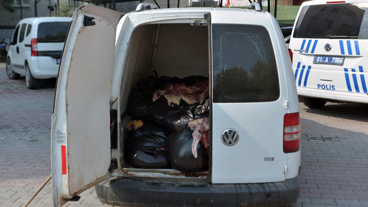 Yüreğir İlçe Emniyet Müdürlüğü'ne bağlı devriye görevindeki ekipler, Koza Mahallesi 1603. Sokak'ta şüphe üzerine 33 ALD 632 plakalı hafif ticari aracı durdurdu. Araçta arama yapan polis, yaklaşık 1,5 ton kırmızı et buldu. Yapılan incelemede etin, tek tırnaklı hayvana ait olduğu belirlendi. Sürücü Nurettin S., gözaltına alınırken, araç da Köprübaşı Polis Merkezi Amirliği'ne götürüldü. Etler de İlçe Tarım ve Orman Müdürlüğü ve zabıta ekiplerine teslim edildi.