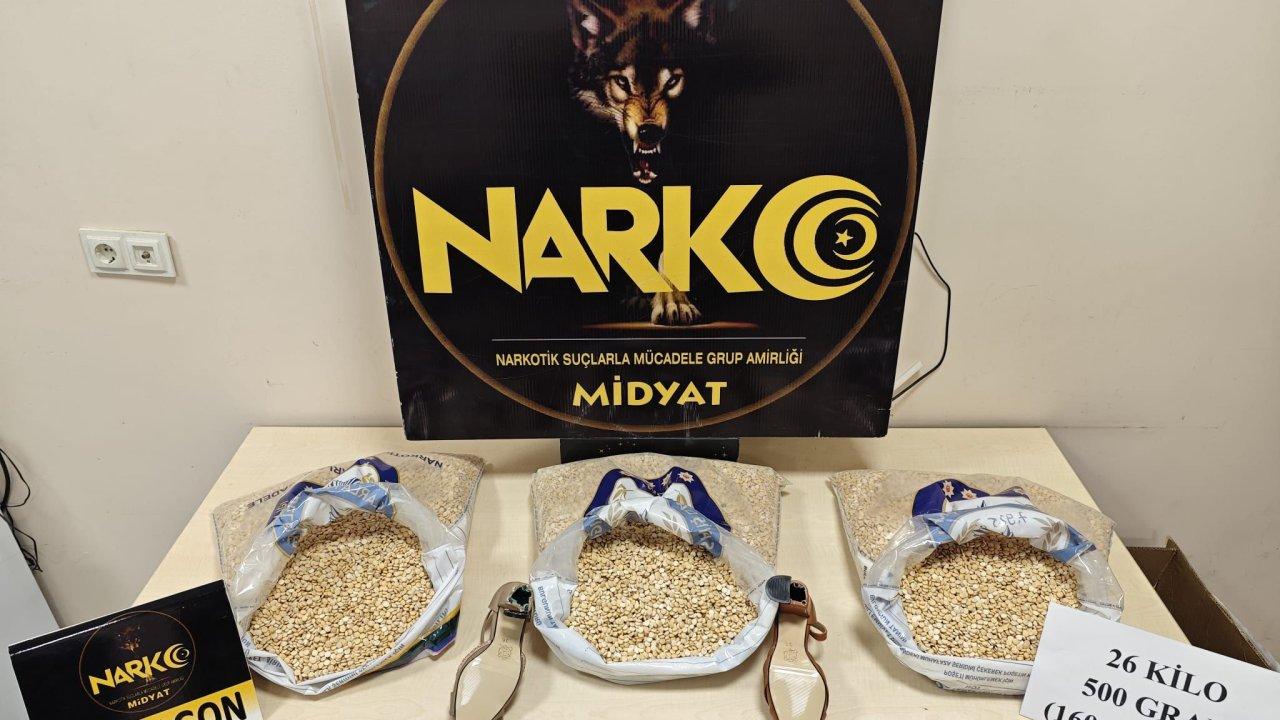 Midyat İlçe Emniyet Müdürlüğü'ne bağlı Narkotik Suçlarla Mücadele Büro Amirliği ve Kaçakçılık ve Organize Suçlarla Mücadele (KOM) Büro Amirliği ekiplerince, alınan bir ihbar üzerine Midyat Cumhuriyet Başsavcılığı koordinesinde, Seyitler Mahallesi Yılmaz Güney Caddesi'ndeki bir adrese operasyon düzenlendi.