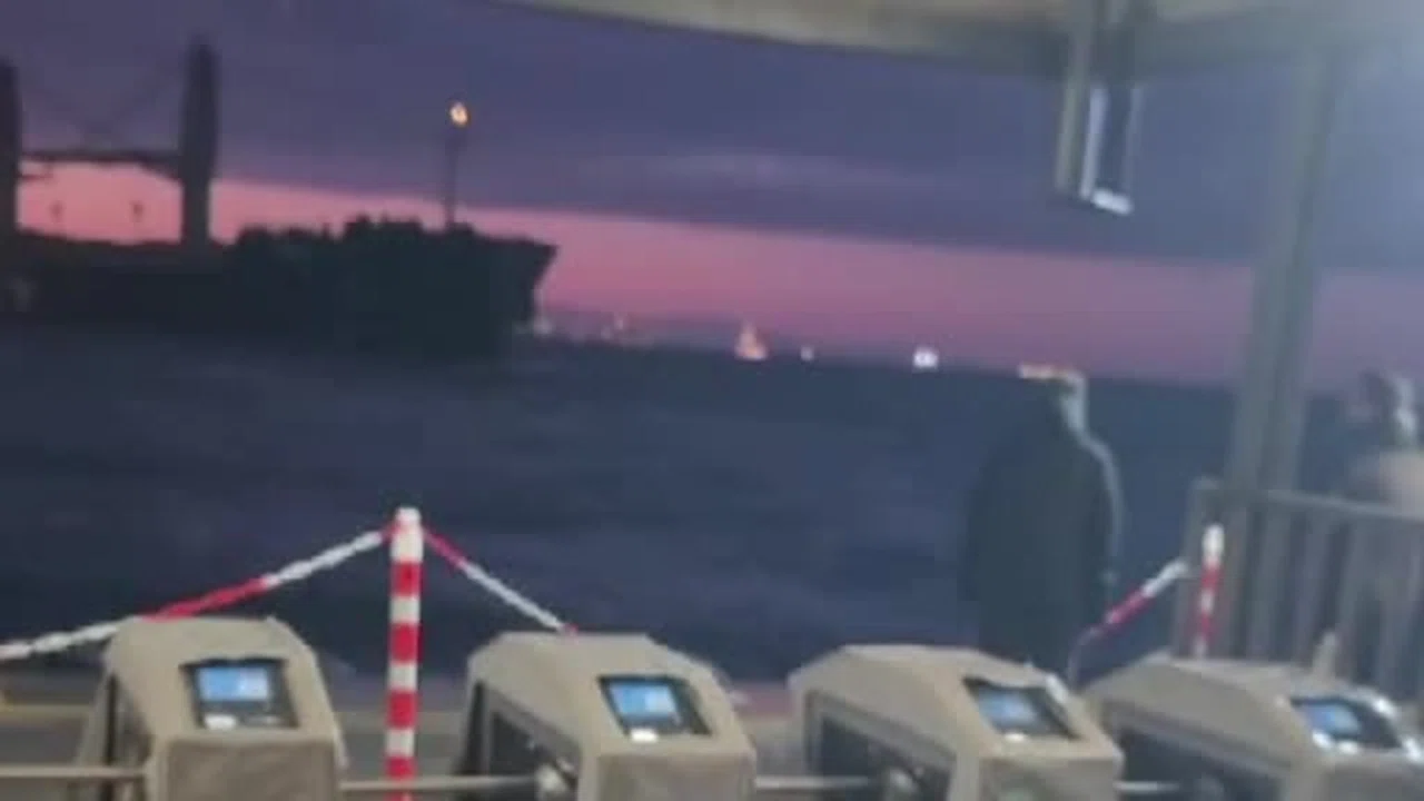 İstanbul Beşiktaş açıklarında makina arızası nedeniyle sürüklenen kuru yük gemisi, iskeleye çarpmadan son anda durdu. İskelede büyük bir panik yaşanırken, o anlar cep telefonu kamerasına yansıdı. Geminin üzerlerine doğru geldiğini görünce kaçtıklarını söyleyen vatandaşlar, "Neredeyse iskeleye çarpıyordu, büyük bir felaket olabilirdi. Millet çok korktu" dedi.