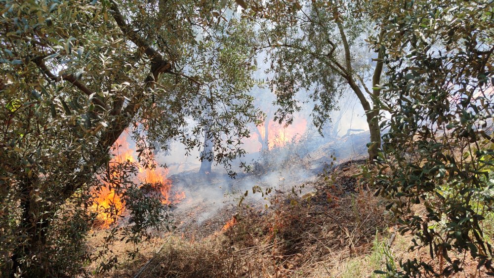 Hürriyet Mahallesi Dereköy mevkisindeki bir zeytinliğin yanındaki otlukta, saat 14.30 sıralarında yangın çıktı. Rüzgarın etkisiyle kısa sürede büyüyen alevler, zeytinliğe sıçradı. İhbarla bölgeye çok sayıda itfaiye ve Orman Bölge Müdürlüğü ekibi sevk edildi. Alevler 1 saatlik müdahale ile kontrol altına alınırken, bu kez bölgeye 500 metre mesafedeki başka bir zeytinlikte yangın çıktı. 2 farklı noktada çıkan yangınlar, ekiplerce kontrol altına alındı. Sabotaj ihtimaline karşı soruşturma başlatıldı.