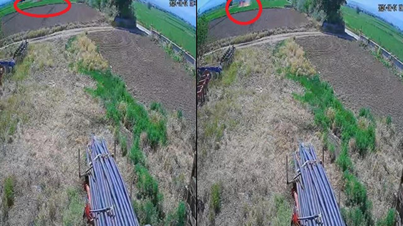 Görüntülerde uçağın ay çekirdeği tarlasına düştüğü görüldü.