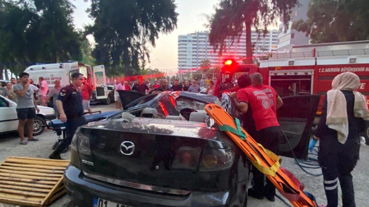 Mersin'in Erdemli ilçesinde 20'nci kattan otomobilin üzerine düşen Mert U., ağır yaralandı.