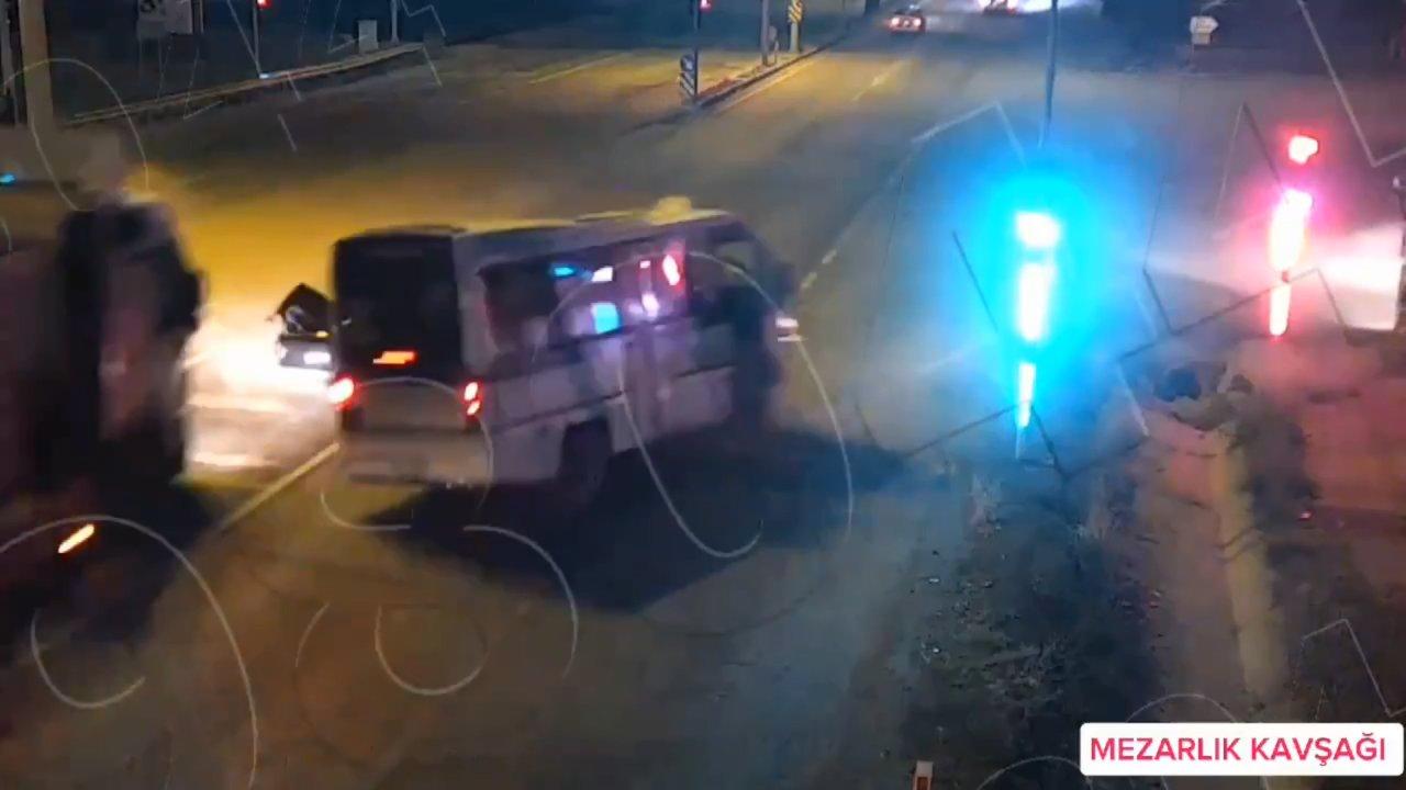 Kent Güvenlik Yönetim Sistemi (KGYS) kameralarına yansıyan görüntülerde; TIR'ı sollamak isteyen otomobilin, başka otomobile çarpmamak için ani manevra yapıp, karşı şeride geçerek dolmuşa, dolmuşun da trafik ışıklarına çarptığı anlar yer aldı.