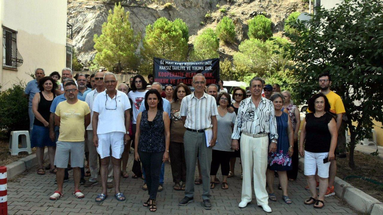 Yapıların proje müellifi olan site sakinlerinden inşaat mühendisi Hüseyin Yılmaz, "Arsa o dönemde askeri istimlak sınırında olduğundan imar dışındaydı. Bir ay sonra kooperatifle yapılan sözleşmede yüzde 30 kat karşılığı arsa sahibine yüzde 70'i de kooperatifte kalacak şekilde sözleşme imzalanmıştı. Anlaşmaya göre imar aldırma işi, ruhsat ve proje işi kooperatifin olacaktı. İmar alındıktan ve askıdan indirildikten 20 gün sonra 1989'da arsa sahibi sözleşmeyi tek taraflı feshetmiş. Arsa sahibi, arsasına imar aldırdıktan sonra fesih işlemini yapıyor. Burada kötü niyet var. Ardından da hukuk mücadelesi başlıyor. Ruhsat için kooperatifimiz mahkemeden yetki aldıktan sonra ruhsat alıp, inşaatları yaptı. 1995'e arsa sahibinin 42 dairesi bitti. Ancak şartlara uymadığı gerekçesiyle teslim almadı. Gelinen noktada sözleşmenin geriye doğru feshine karar verildi. Bu karar sözleşmeyi hiç yapılmamış saymaktır ve her şeyin ilk haline dönmesi demektir. Bu kararın hukuka aykırı olduğunu düşünüyoruz. Çünkü 3 tane sözleşmenin feshi davası açılıp, reddedilmişti. Buna rağmen İzmir 2'nci Asliye Ticaret Mahkemesi, sözleşmenin geriye doğru feshine karar veriyor. Arsa sahibi de tüm üyelere tahliye davası açtı. Şu anda herkes çok mağdur. Büyük bir hukuksuzluk var. Bunun önlenmesi için hukuki olarak mücadelemize devam ediyoruz" diye konuştu.