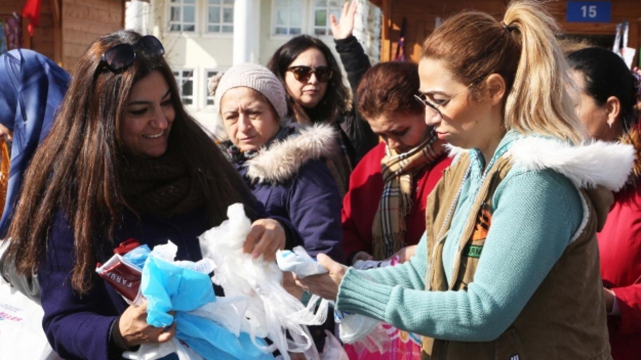 Küçükçekmece Belediyesi, Sıfır Atık projesi kapsamında Çevre ve Şehircilik Bakanlığı’nın plastik poşet kullanımının azaltılmasına yönelik çalışmalarına destek vermeye devam ediyor. Bu kapsamda Küçükçekmece Belediyesi Hünerli Eller Çarşısı’nda başlatılan kampanyaya Küçükçekmeceli kadınlar büyük ilgi gösteriyor. Çarşıya 5 adet poşet getiren vatandaşlara, farklı renklerde pazar filesi veya ücretsiz bez çanta hediye ediliyor.