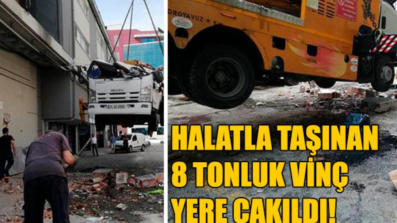 Olay, Haramidere Sanayi Sitesi'nde geldi. 8 tonluk bir vinç plastik başka bir vinç yardımı ile iş yerinin 1'inci katına taşınmak istenirken halatları kopması ile vinç yere çakıldı.
