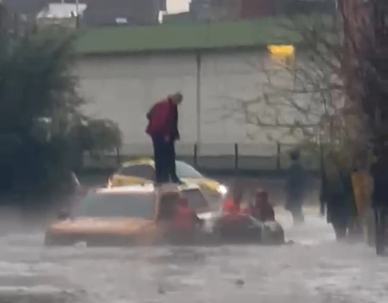 Merkez Çukurova ilçesine bağlı Yurt Mahallesi’nde suyla kaplanan yolda mahsur kalan bir otomobildeki sürücü ve yolcu, canlarını kurtarmak için aracın üzerine çıktı. İhbar üzerine olay yerine sevk edilen itfaiye ekipleri, mahsur kalan iki kişiyi kurtararak güvenli alana aldı.