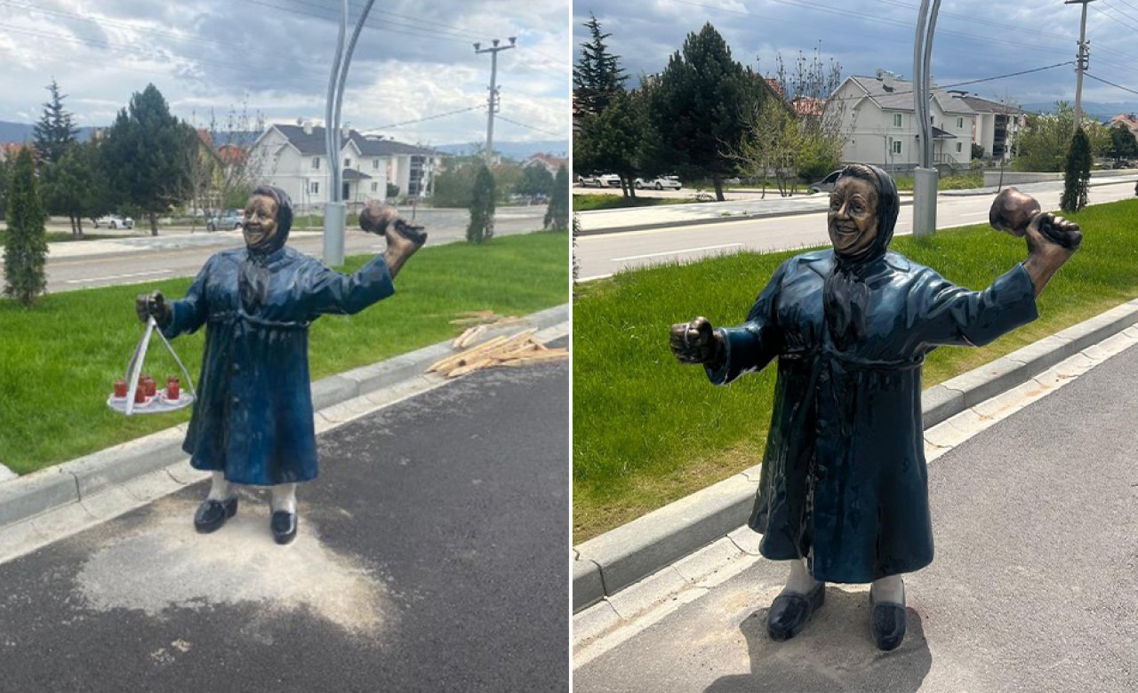 Özcan’ın paylaşımının ardından çalındığı iddia edilen heykeldeki tepsinin oyun oynayan çocuklar tarafından tahrip edildiği ortaya çıktı. Tepsinin kırıldığını gören bir esnafın belediyeyi arayarak ihbarda bulunduğu, Bolu Belediyesi Zabıta Müdürlüğü ekiplerinin de heykelin kırılan kısmını alarak tamirat için Park ve Bahçeler Müdürlüğü'ne götürüldüğü öğrenildi. Heykelin zarar gören kısmının tamirat işleminden sonra geri koyulacağı öğrenildi.
