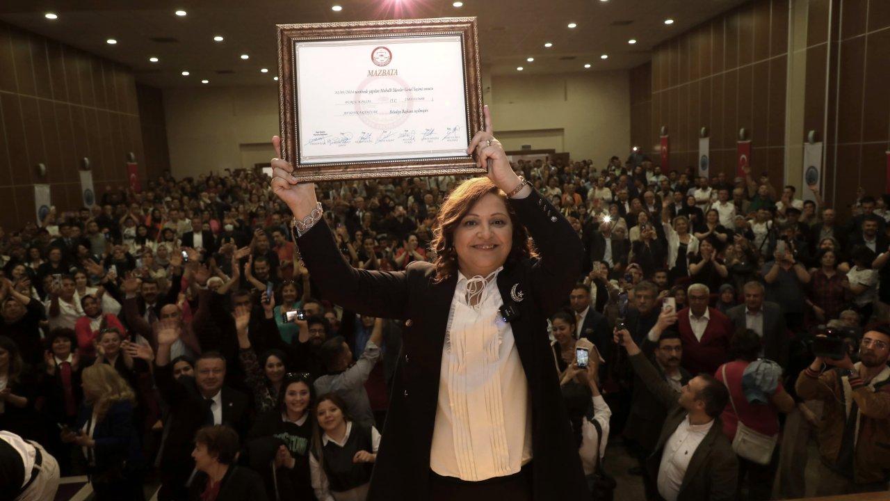 Konuşmanın ardından Başkan Burcu Köksal'a İlçe Seçim Kurulu Başkanı Erdem Kılınç tarafından mazbatası teslim edildi.