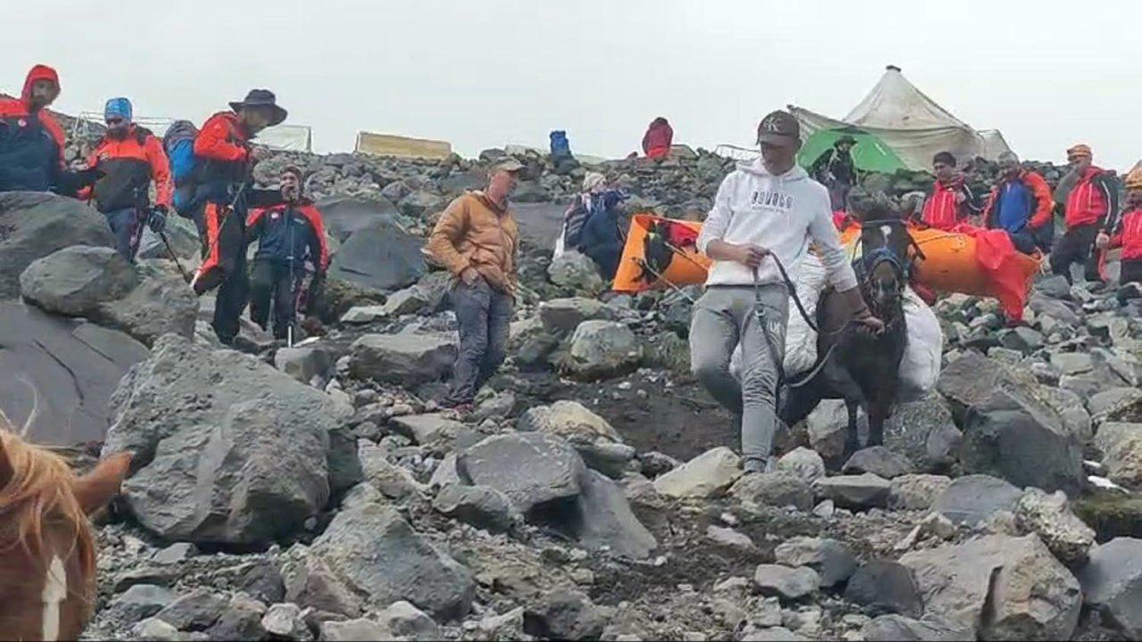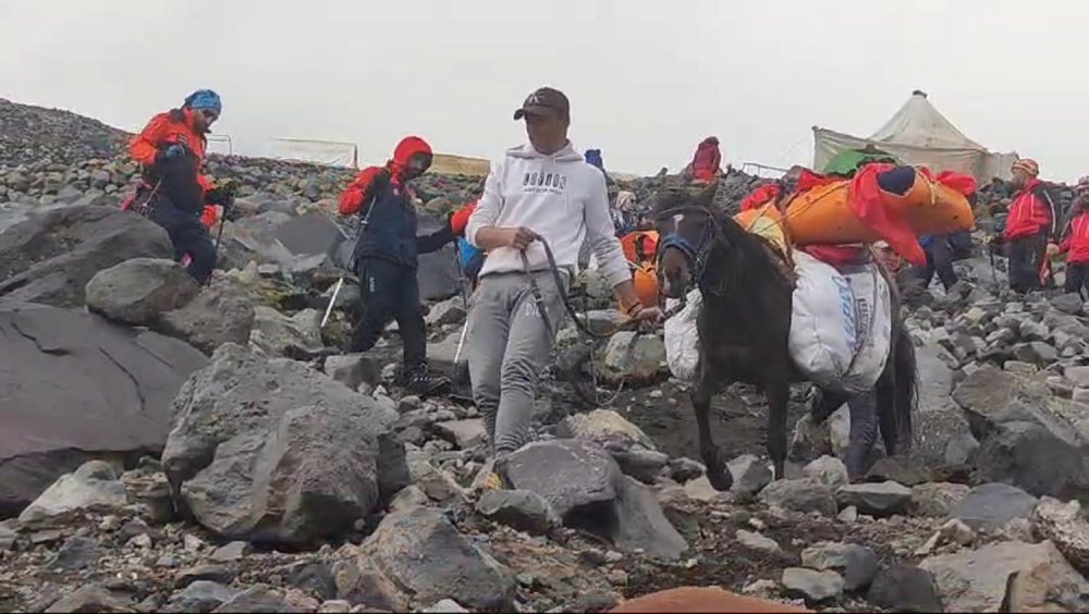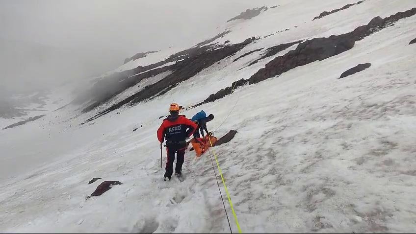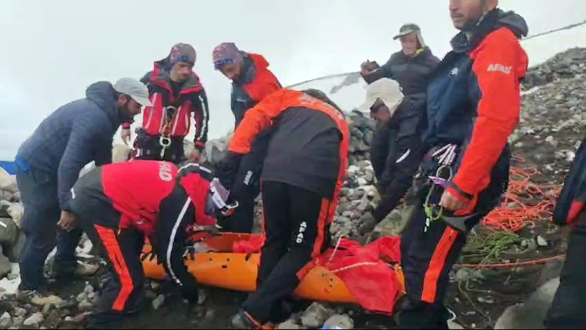 Ağrı Dağı'nda zirve yaptıktan sonra dönüşe geçen 3 İranlı dağcıdan Ekber Helili (47), düşerek hayatını kaybetti. 5 gün sonra ulaşılabilen İranlı dağcının cenazesi 400 metre halatla çekilip, at sırtında aşağı indirildi.